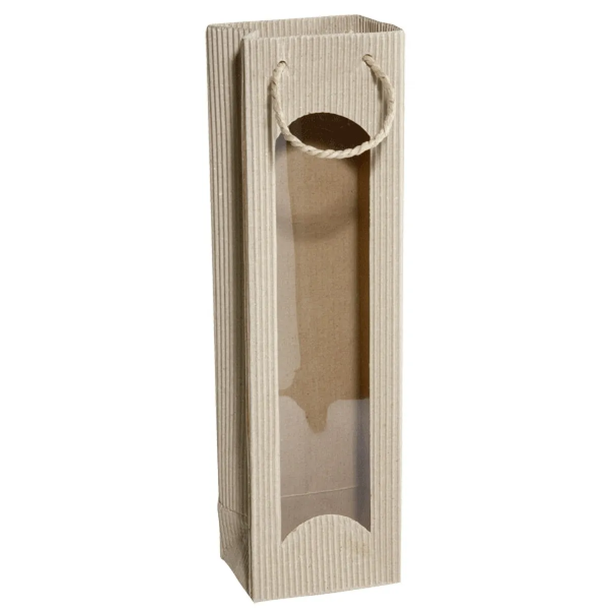 Geschenktüte offene Welle natur mit Fenster für 1 Flasche