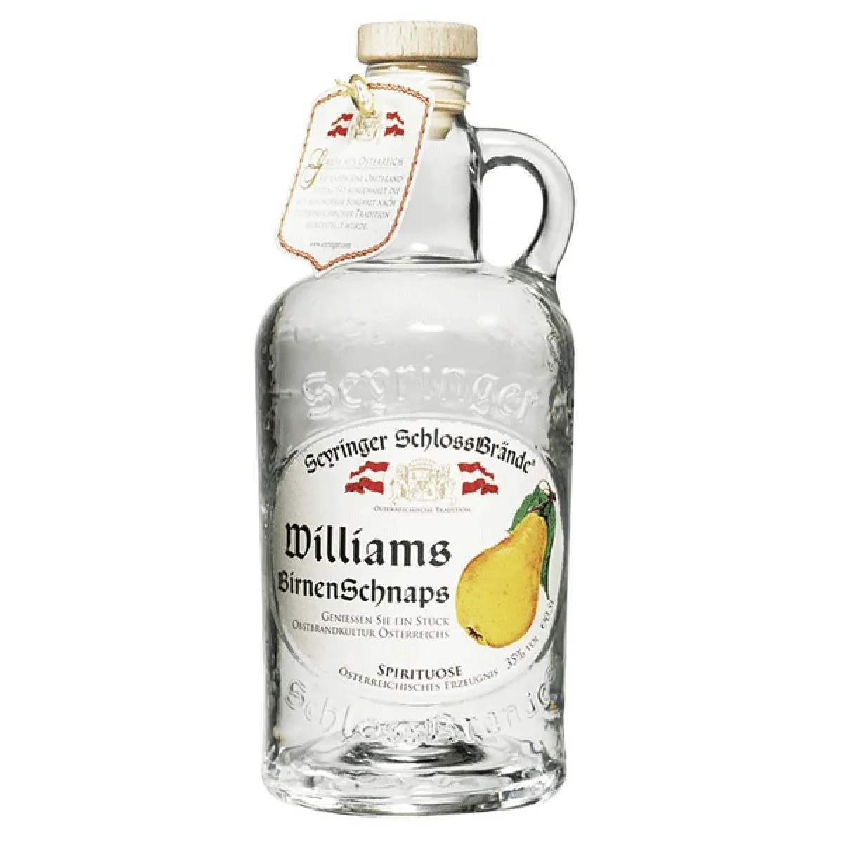 Seyringer Williams Birnen Schnaps ist ein Klassiker unter den Schlossbränden. Er besitzt eine typische Aromatik nach intensiver Williamsfrucht mit feiner Fruchtsüße. Das Finale ist lang und harmonisch.