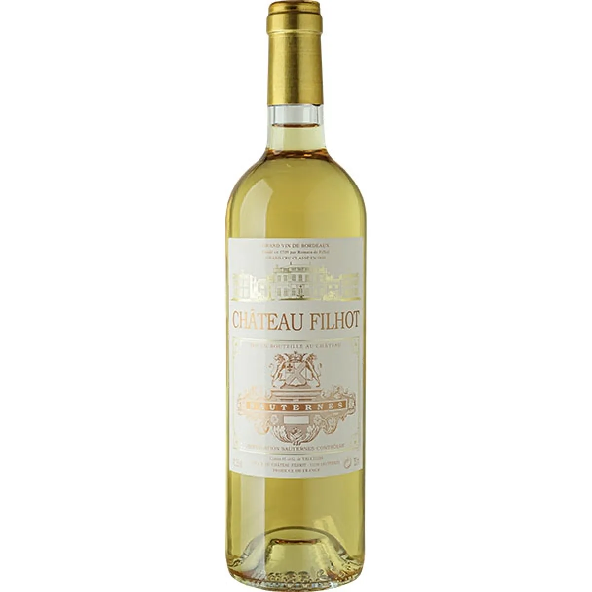 Château Filhot wurde im Jahre 1709 von Romain de Filhot gegründet. Heute ist es im Besitz von Henri de Vaucelles. Das Landgut umfasst 350 ha mit 62 ha Weingut südlich der Stadt Sauternes in der Appellation Sauternes gelegen. 60% sind mit der Rebsorte Sémillon, 36% mit Sauvignon und 4% mit Muscadelle bepflanzt. Durch das angrenzenden Waldstück und den durchkreuzenden kleinen Fluss Ciron wird ein optimales Klima geschaffen, welches die Entwicklung der Edelfäule Boytritis Cinerea, auch Grauschimmel genannt, auf den Trauben begünstigt.Bewertung: